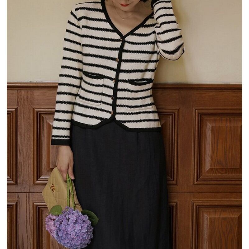 ニットボーダーショートカーディガン
