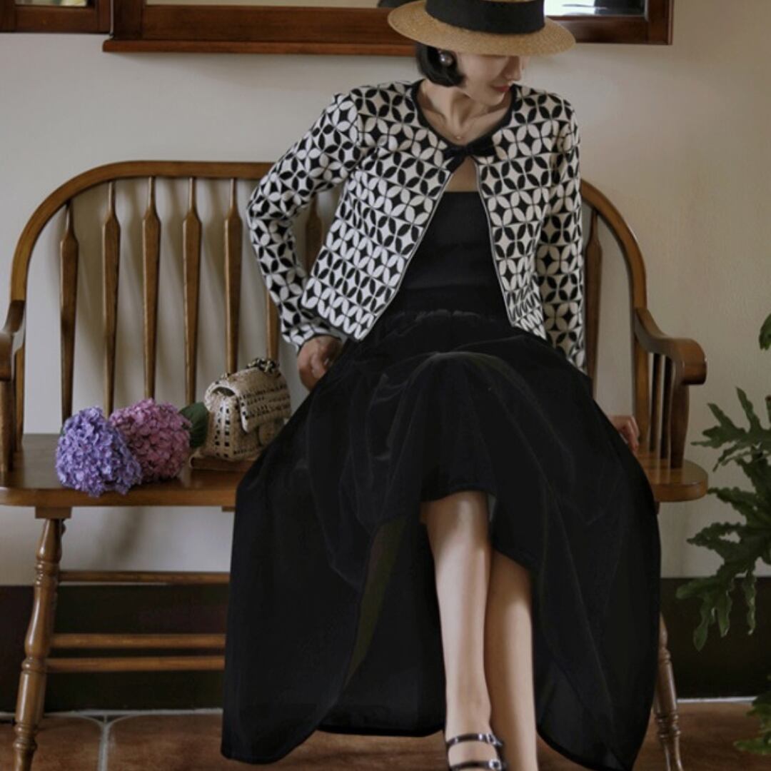 コントラストリボンカーディガン