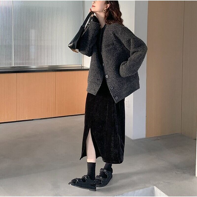 スエードダブルブレストスカート