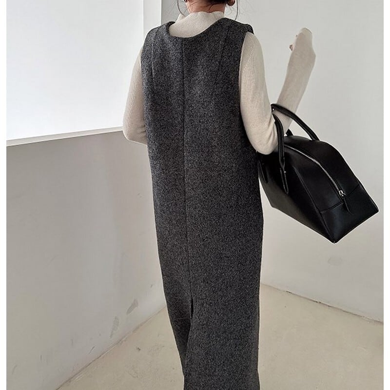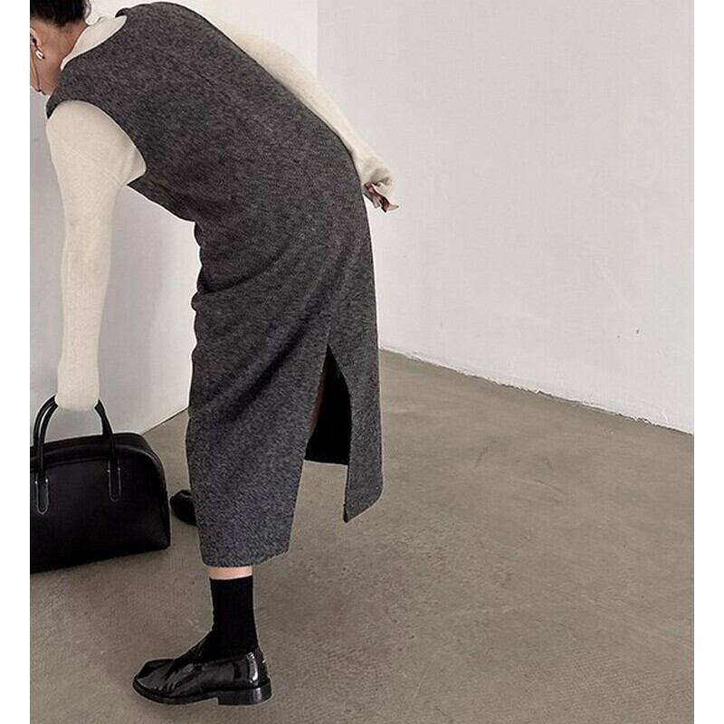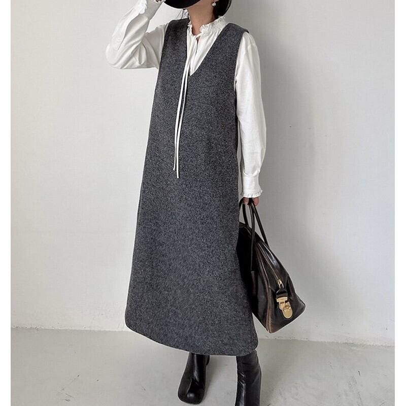 ウール Vネック ストレートワンピース
