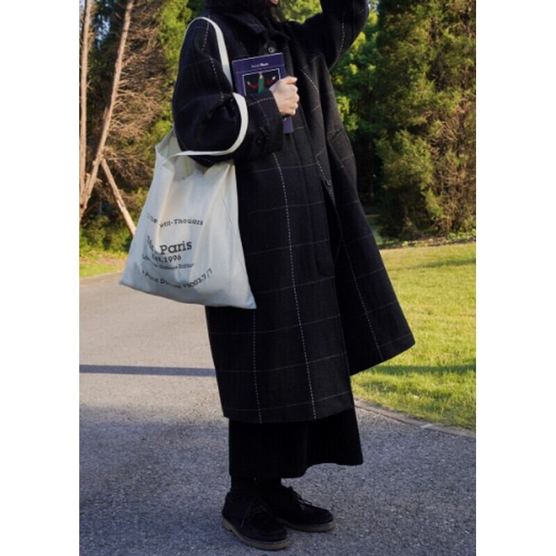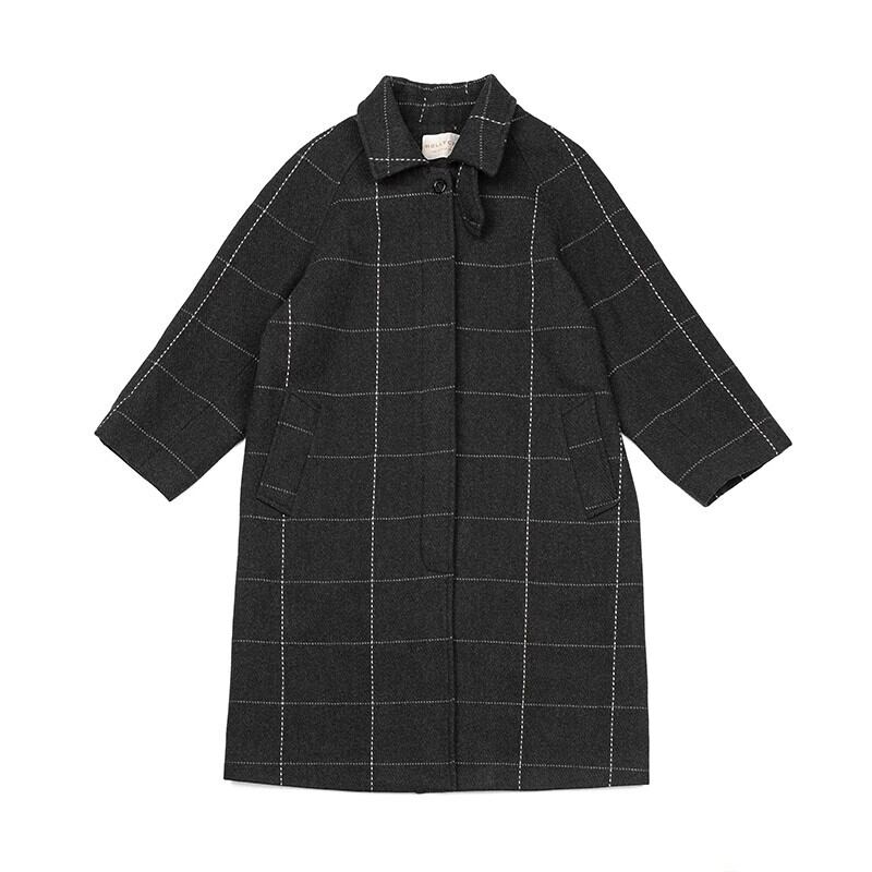 ウールロングチェックコート